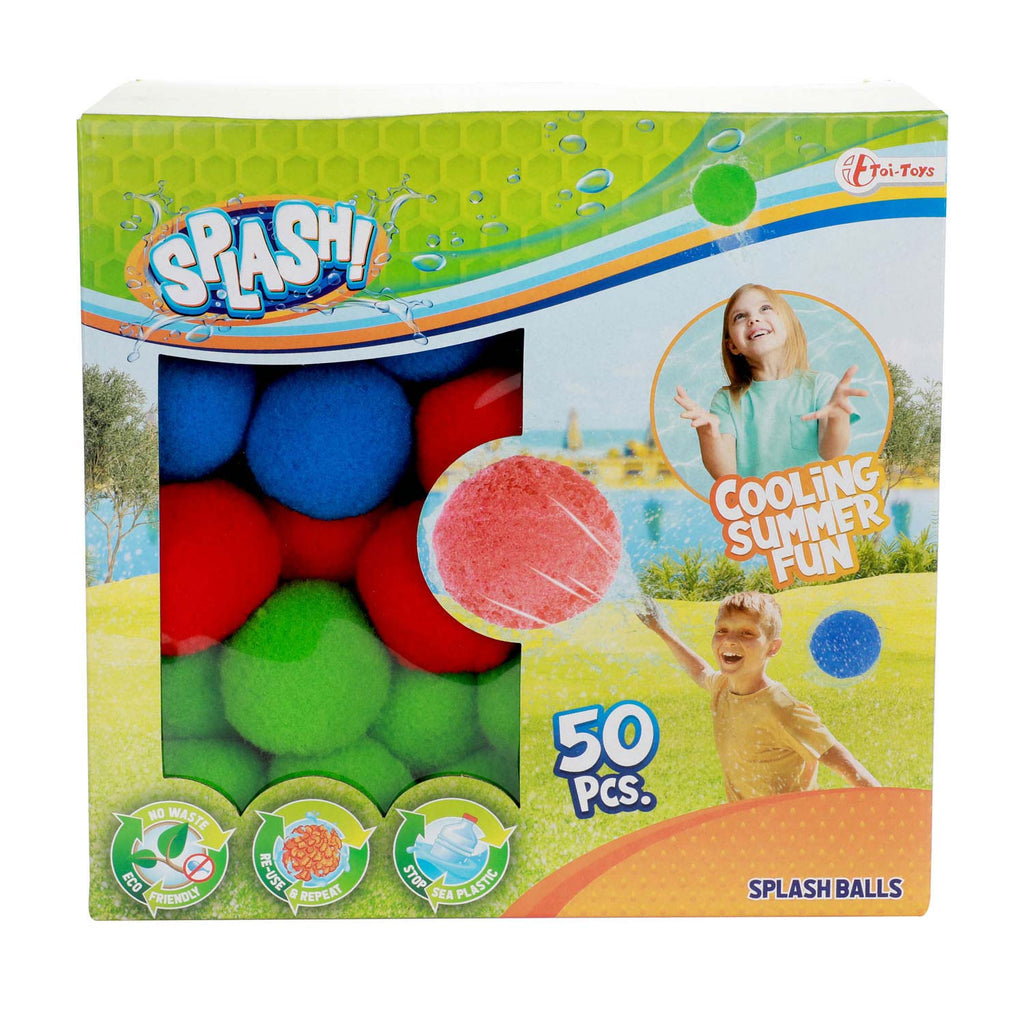Splashballen met een diameter van 5 cm. De ballen absorberen water, waardoor er leuk mee gespeeld kan worden. Inhoud: 50 stuks. Geschikt voor kinderen vanaf 2 jaar.