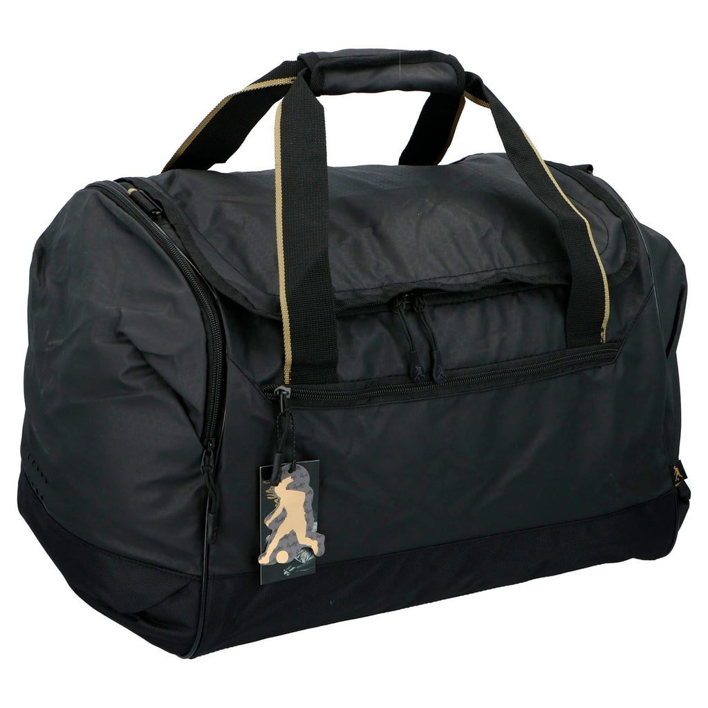 In deze zwarte sporttas kun je al je sportkleding meenemen. Met meerdere vakken, raak je ook kleinere spullen niet kwijt. De hengsels kun je aan elkaar maken met de band met klittenband.