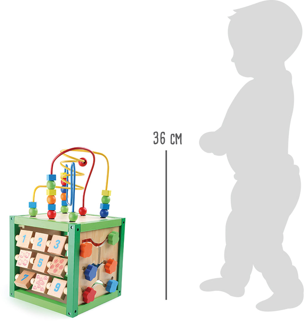 Met een motorloop, de rekenliniaal en het cijferherkenningsbord, een schuifspel voor het herkennen van logische reeksen en verbanden en een schilderbord heeft deze motorkubus alles wat kleintjes nodig hebben voor hun eerste leerpogingen. Deze houten motorkubus biedt een verscheidenheid aan speelervaringen voor de kleintjes.