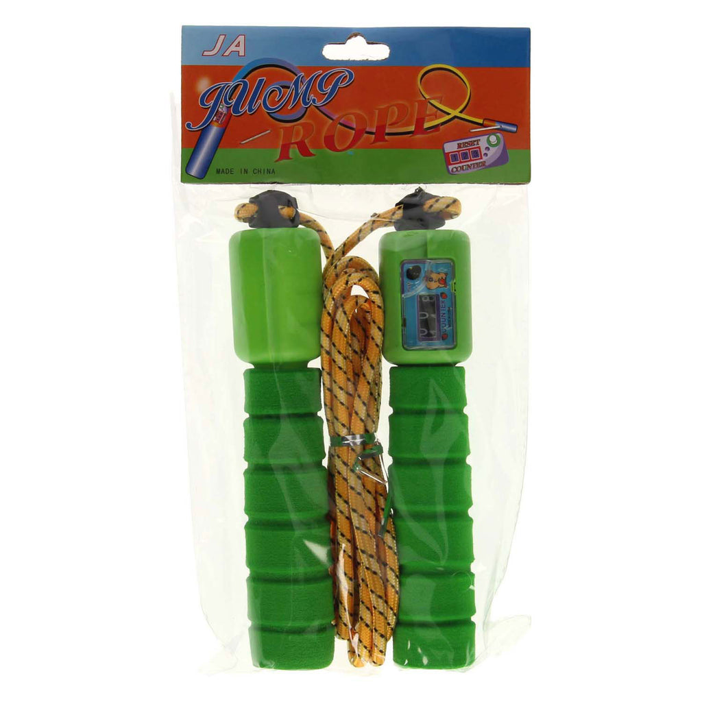 Gekleurd springtouw met teller. Geschikt voor kinderen vanaf 6 jaar oud.
