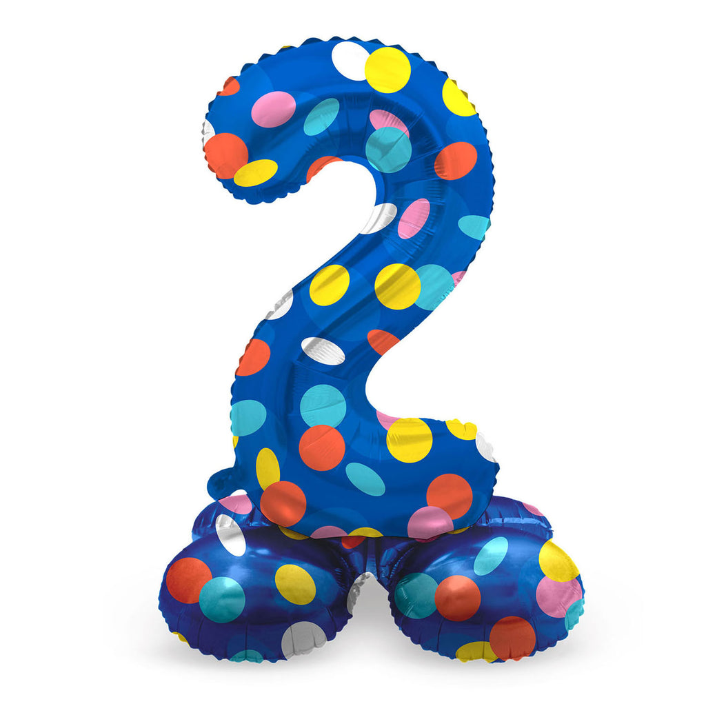 Staande Folieballon Cijfer 2 Colorful Dots - 72 cm. Inhoud: 1 folieballon. Kleur: meerkleurig. Bijvoorbeeld te gebruiken tijdens de volgende feestgelegenheid/feestgelegenheden: Verjaardag, Kinderfeestje en Themafeest. Deze folieballon is 72 cm en kan gevuld worden met lucht (geen helium nodig). Het artikel is gemaakt van folie.