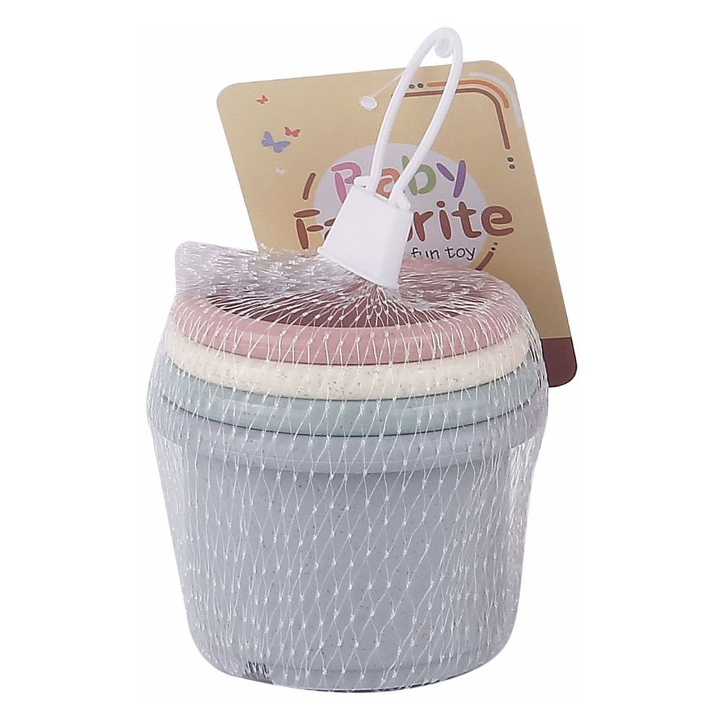 Set van 4 pastelkleurige stapelbekers. Geschikt vanaf 6 maanden.