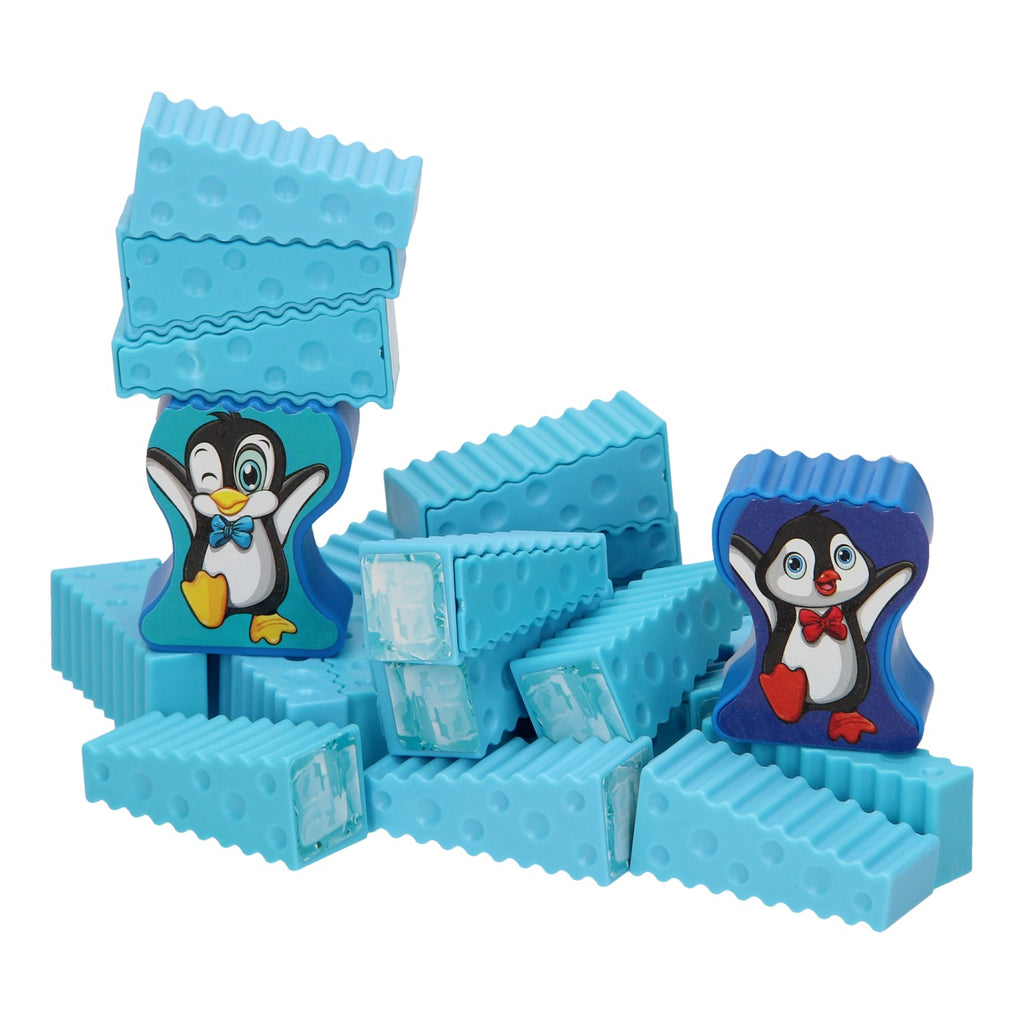 Speel drie verschillende versies van dit stapelspel. Spel 1: je plaatst een van de pinguïns in het midden van de spelers en verdeelt de stukjes ijs eerlijk over het aantal spelers. Iedere speler legt om de beurt een ijsblokje op de pinguïn. Vallen de stukjes bij jouw beurt? Dan zijn de gevallen stukjes nu van jou. Degene die het eerst al zijn ijstukjes op de pinguïn heeft gelegd, wint!