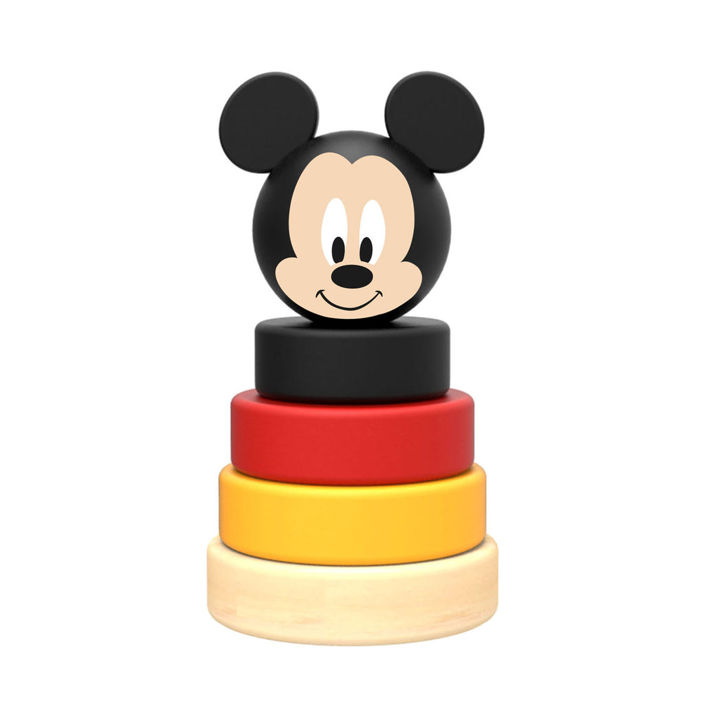 Disney stapeltoren Mickey Mouse. Laat jouw kleintje de ringen van de juiste grootte op elkaar leren stapelen samen met Mickey Mouse. Goed voor het bevorderen van de oog- en handcoördinatie. Materiaal: hout. Afmetingen: 6 x 10 centimeter. Geschikt voor kinderen van 1 tot 4 jaar oud. Inhoud: 1 pin, 3 ringen, 1 Mickey Mouse.