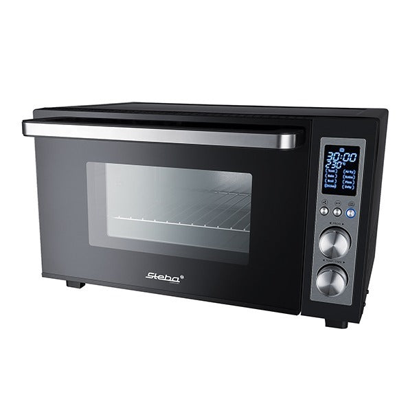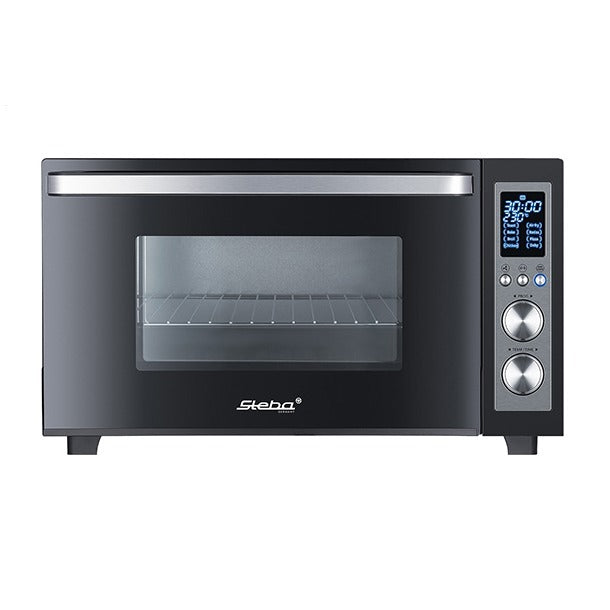Een compacte en goed uitziende mini oven heb je met de Steba KBE300. Het apparaat beschikt over een handig digital display. De spouw en de bakplaat zijn voorzien van een goede antiaanbaklaag. De oven heeft drie inschuifniveaus waar je bijvoorbeeld de bakplaat kan inschuiven. Bij het apparaat zit ook een draaispit waarmee je twee kippen kunt bereiden. De oven werkt met boven- en onderwarmte. De temperatuur in de oven is eenvoudig te bedienen met de temperatuurregelaar. Tijdens de bereiding kan je via de KBE300 een timer zetten van maximaal 90 minuten. Door de verlichting kan je de bereiding goed waarnemen. De oven heeft een inhoud van 30 liter en een vermogen van 1500 watt. Verder heeft het een hoogte van 31,5 cm, een breedte van 53,5 cm en een diepte van 43 cm. Daarnaast beschikt het nog over een uitdroogrek, een kruimellade, een draadgrill en twee handige bedieningsknoppen.