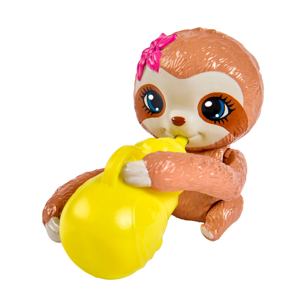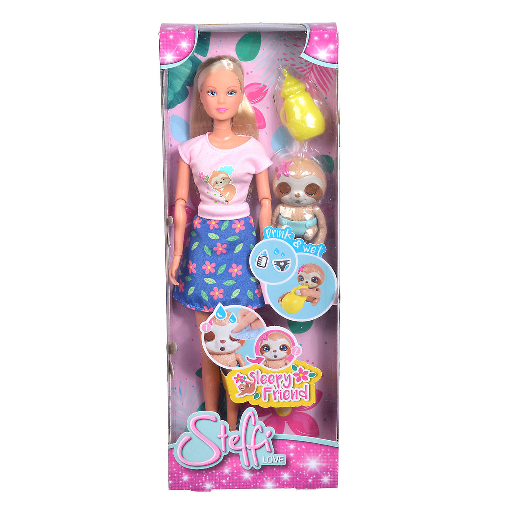 Steffi heeft een nieuw vriendje: de baby luiaard! Geef de luiaard te drinken uit de fles, en hij zal in zijn luier plassen! De slapende luiaard maak je wakker door met een nat doekje over de oogjes te wrijven. Zie hoe de oogjes weer open gaan!