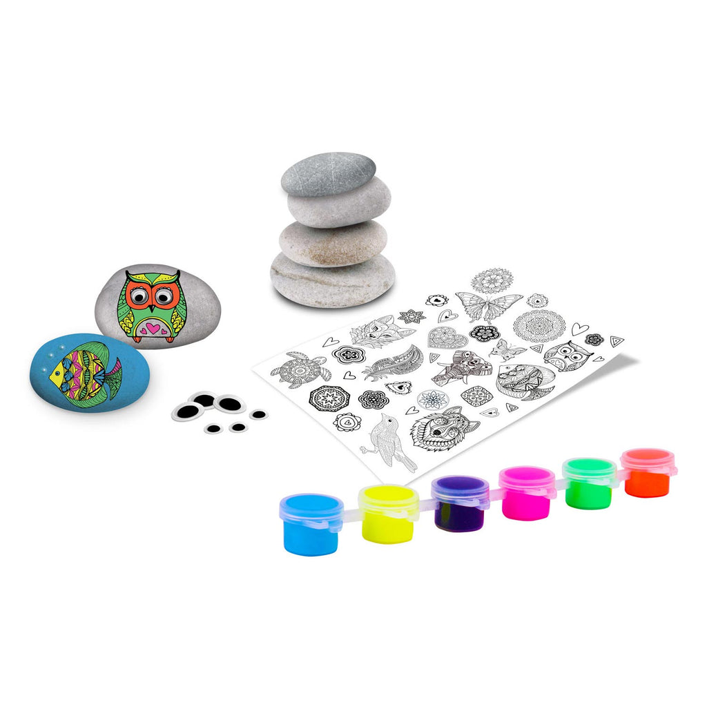 HAPPY STONES is een leuke nieuwe hobby met een zee aan mogelijkheden. Met de bijgeleverde sjablonen kun je leuke vormen maken . Je hebt de keuze uit heel makkelijk te maken onderwerpen of wat ingewikkelder vormen. Bovendien kun je zo groot of klein werken als je zelf wilt, van kiezelformaat tot zwerfkei! De eindresultaten zijn op allerlei manieren bruikbaar: als siervoorwerp in huis of tuin, als leuk persoonlijk cadeautje.Happy stones worden ook in de buitenlucht gedropt door de maker om gevonden te worden door een onbekende vinder. Zie hiervoor Facebook groepen voor de super leuke reacties op deze leuke stenen.Heel veel creativiteit toegewenst!