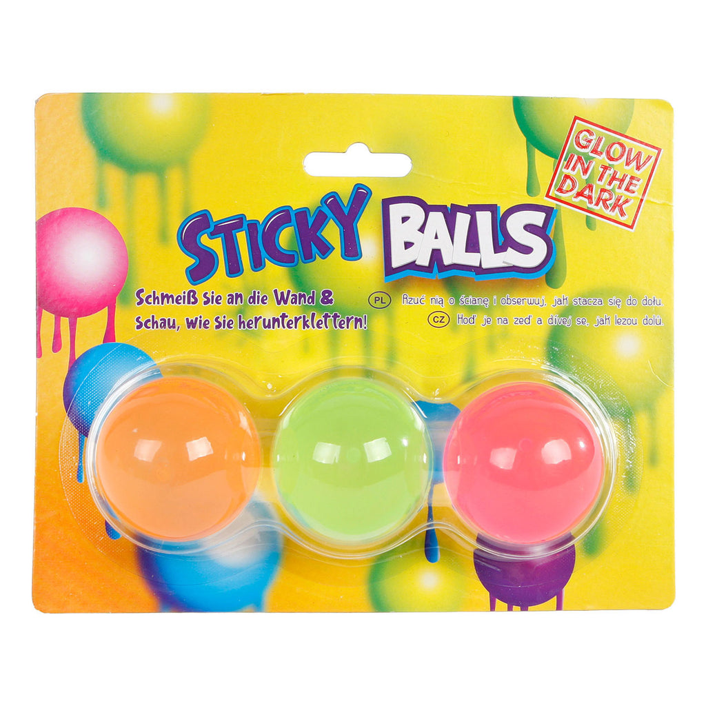 Deze glow in the dark plakkerige balletjes kun je tegen het raam (of een ander glad oppervlak gooien), om vervolgens te kijken hoe de sticky bal zich een weg naar beneden baant. De sticky balletjes zijn 4 centimeter in doorsnede. Geschikt voor kinderen vanaf 3 jaar oud.