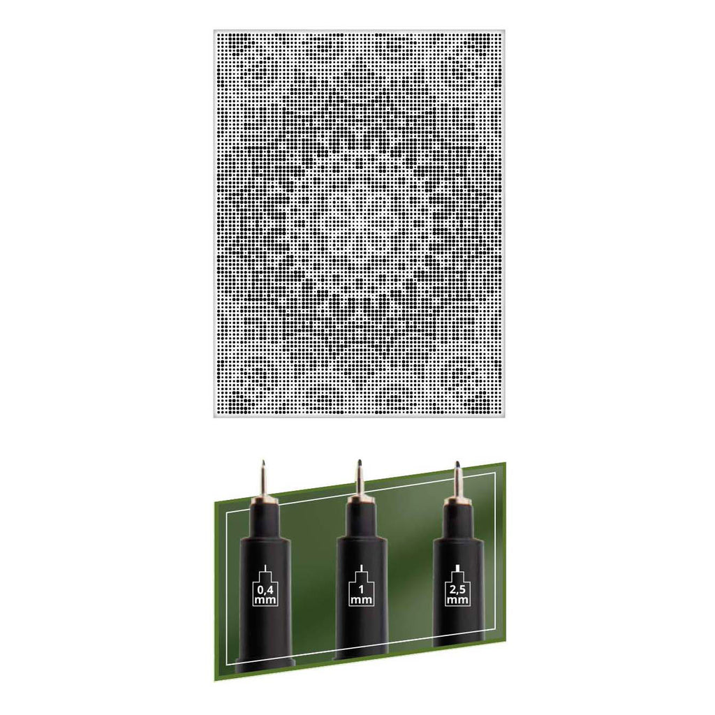 Dot painting canvas van 40 x 30 cm met mandalaontwerp, inclusief 3 zwarte markers. Stimuleert concentratie en creativiteit.