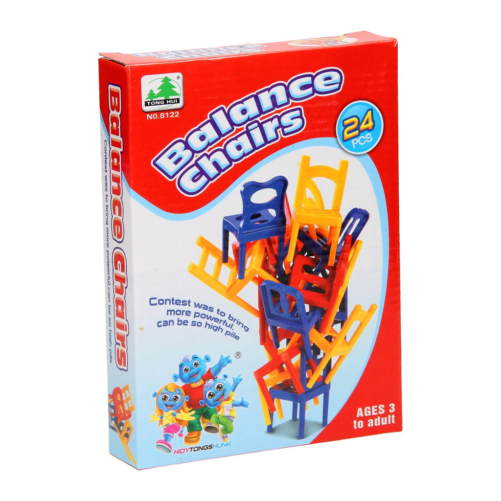 Wie van jullie heeft de meest vaste hand? Stapel om de beurt een stoel op de tafel en probeer daarbij de toren overeind te houden! Als je de toren om laat vallen zijn al die stoelen voor jou. Degene die als eerste zijn stoelen kwijt is heeft gewonnen.