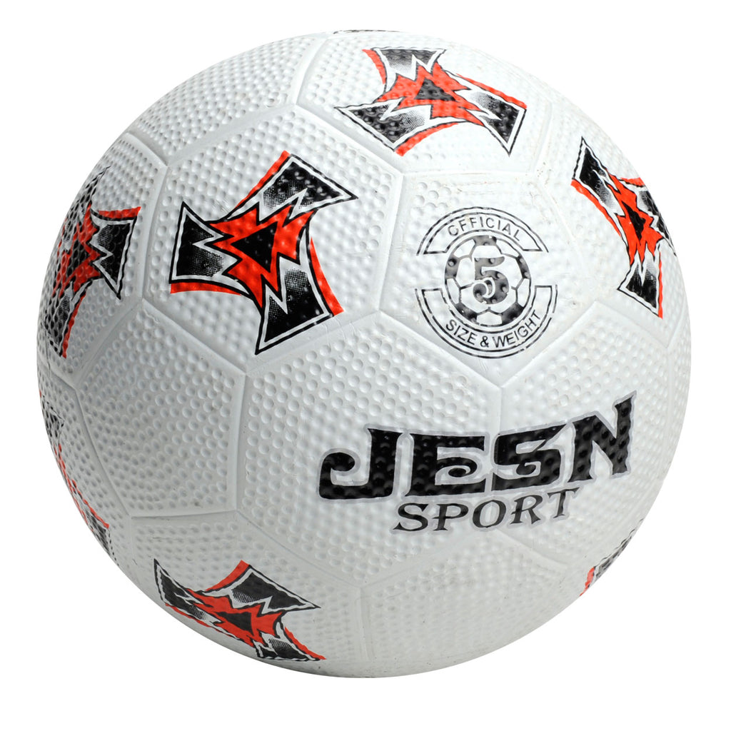 Witte rubberen voetbal. Stevige bal om een mooi potje mee op straat te voetballen! De bal wordt onopgeblazen geleverd.