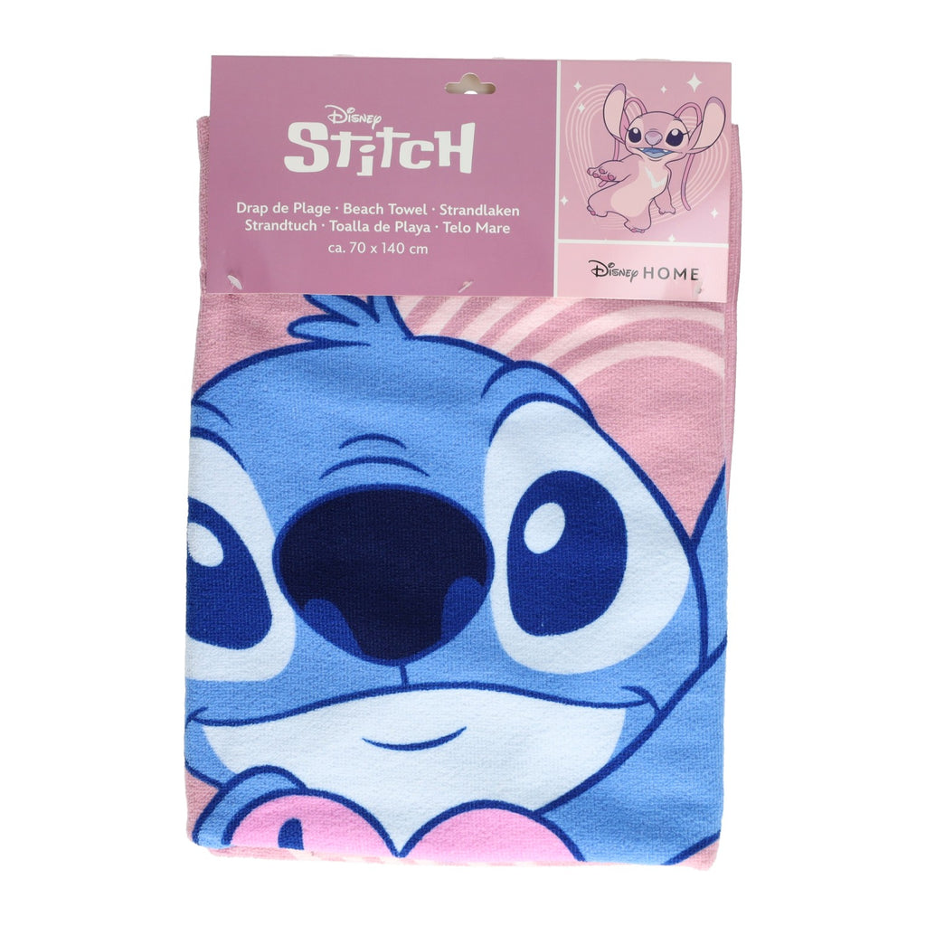 Stitch strandlaken van 70 x 140 cm, gemaakt van 100% polyester. Zacht, lichtgewicht en absorberend. Geschikt vanaf 3 jaar.