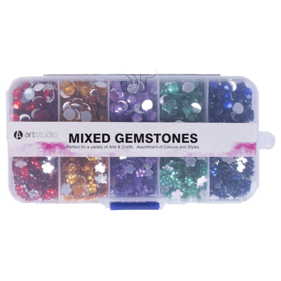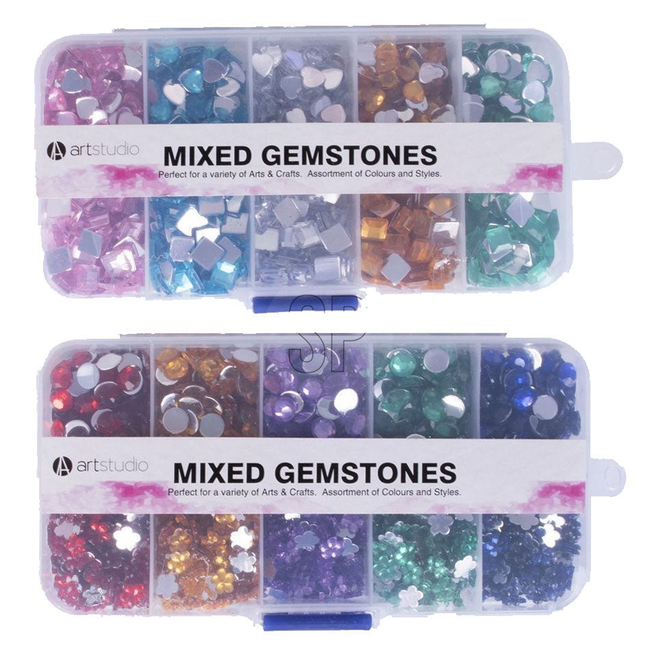 Kunststof opbergdoos met een mix van 10 verschillende strassteentjes, geschikt om mee te knutselen. Niet geschikt voor kinderen jonger dan 3 jaar.
