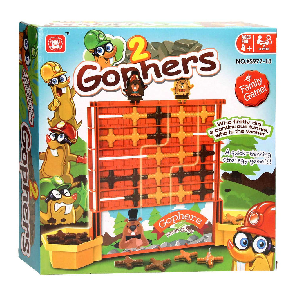 Strategisch spel voor 2 personen vanaf 4 jaar. Wie graaft het snelst een doorlopende gang naar boven voor de schattige marmotten? Gemaakt van kunststof. Dit spel bevat een Engelstalige handleiding.