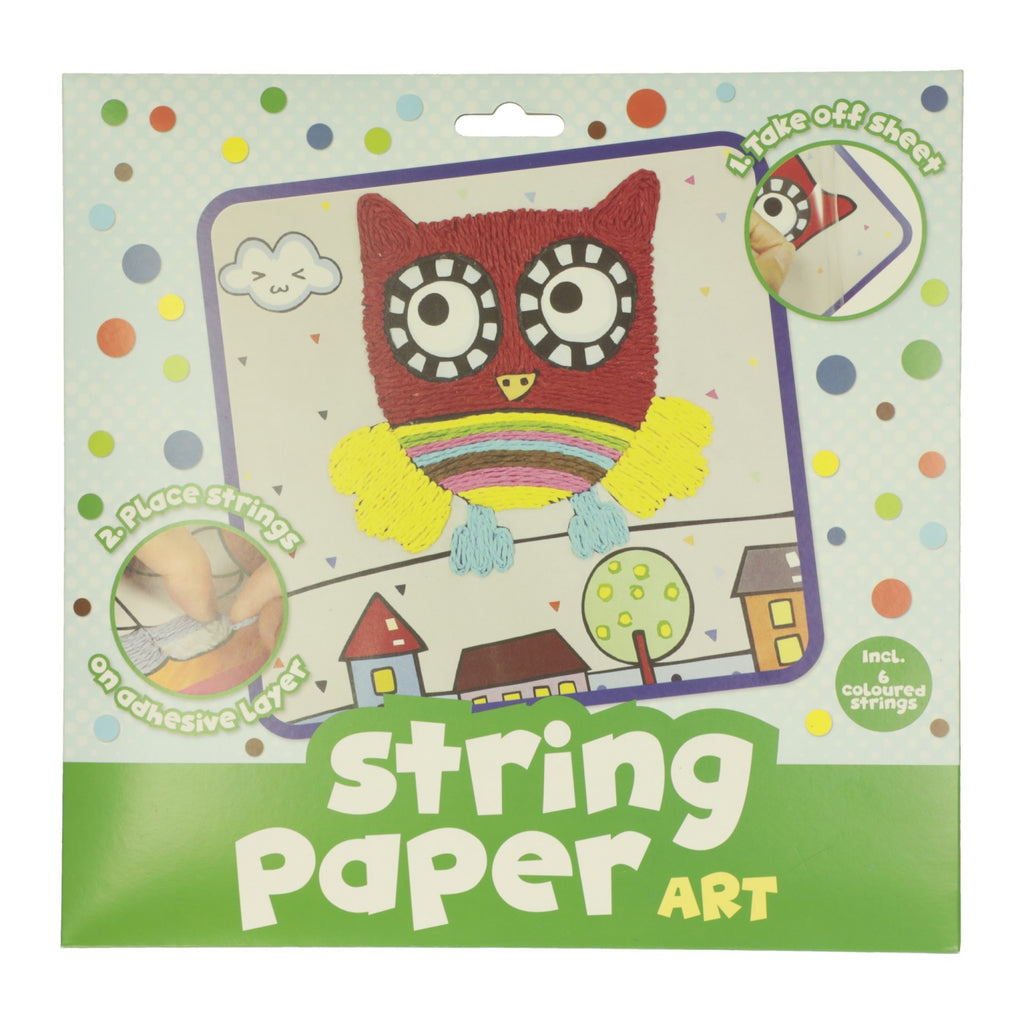 Knutselset waarbij een schilderijtje versiert wordt met gekleurde touwtjes. Het pakket bevat een schilderijtje (22 x 22 cm), verschillende touwtjes en een kartonnen standaard. De knutselset is geschikt voor kinderen vanaf 3 jaar.