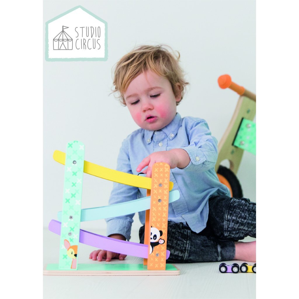 Met deze kleurrijke autobaan beleven jongens en meisjes veel plezier. Zet de 3 bijgeleverde auto?s op de startpositie en daar gaat ie?? Spelen met de autobaan bevordert de motoriek en oog-handcoördinatie.
