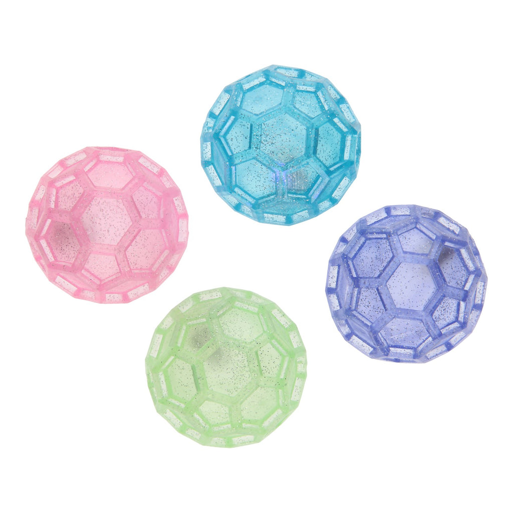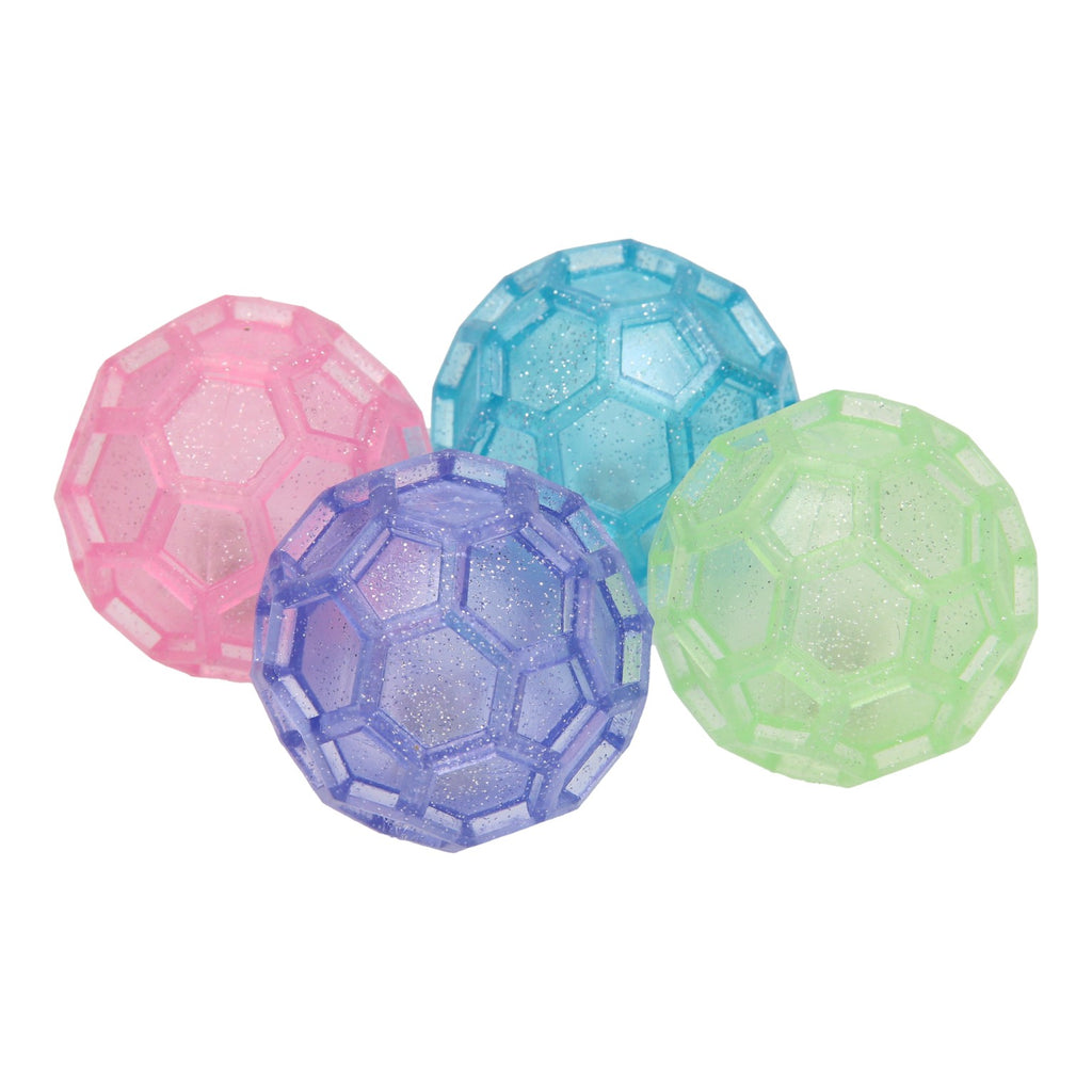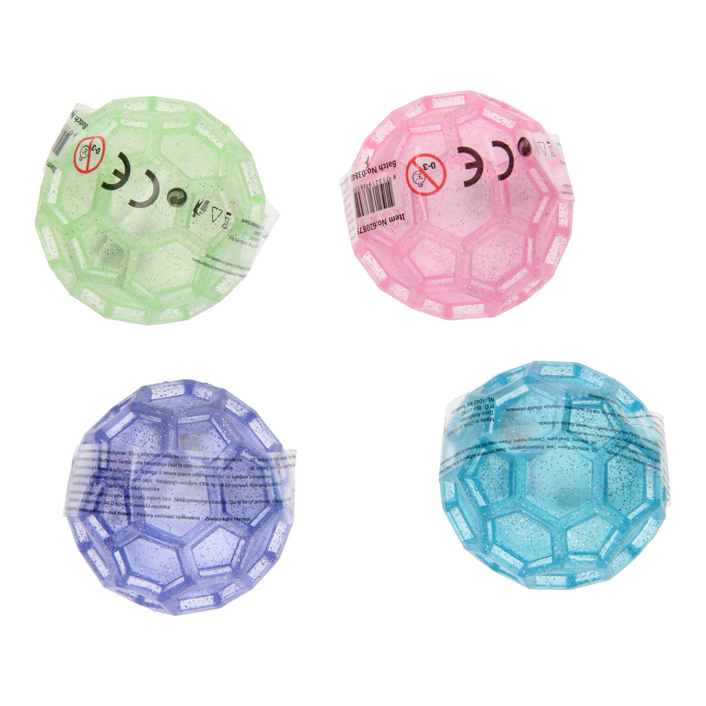 De stuiterbal glitter met licht heeft een doorsnede van 6,5 centimeter.