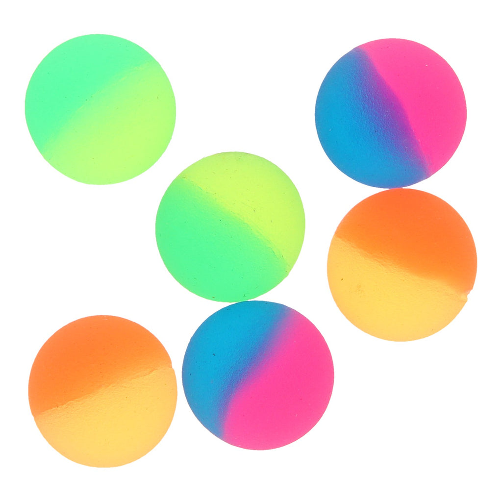 Set van 6 stuiterballen met vrolijke kleuren. De stuiterballen hebben een doorsnede van 3 cm.