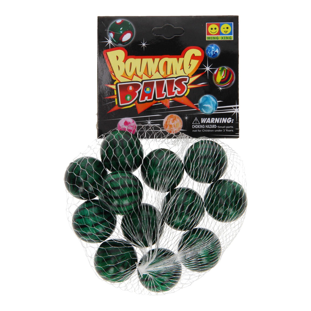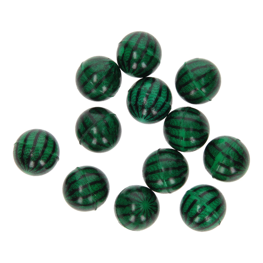 Set van 12 stuiterballen met een meloen print. De stuiterballen hebben een doorsnede van 2 cm.