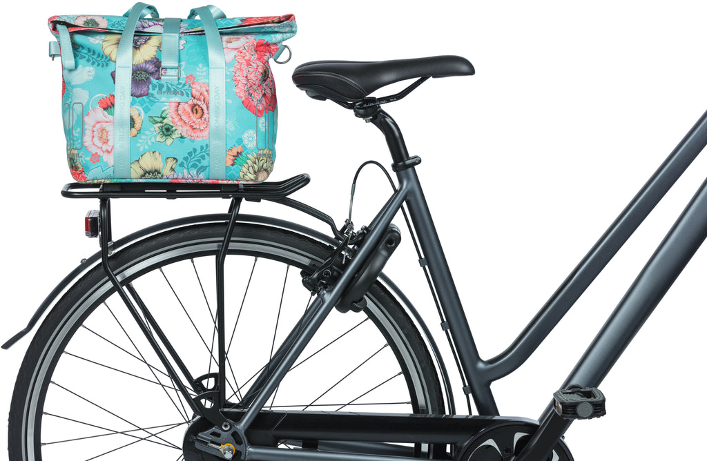 Met de Basil Bloom Field kies je voor een opvallende en duurzame fietshandtas! De fietstas is gemaakt van gerecycled PET plastic en heeft een handgeschilderde bloemenprint. Ondanks dat de tas compact van formaat is, is er ruimte genoeg om je spullen zoals je portemonnee, sleutels en mobiel mee te nemen. In het hoofdvak zit een gewatteerd vak voor een tablet. De tas is volledig waterdicht, je neemt je waardevolle spullen daarom veilig en droog mee. De gele fietstas bevestig je makkelijk aan je fiets of hang je gewoon nonchalant over je schouder met de afneembare schouderband. Je kunt de tas op meerdere manieren aan je fiets bevestigen, de keuze is aan jou! Wil je de tas voorop in het zicht hebben? Bevestig de Bloom Field tas dan met de voormonteerde KF-adapterplaat aan je stuur. Het systeem is apart verkrijgbaar. Met de voormonteerde haken kun je tas ook aan je bagagedrager haken. Of met een adapterplaat op de bagagedrager. Een adapterplaat zoals MIK is apart verkrijgbaar. Eigenschappen: Hippe handtas die op meerdere manieren aan de fiets bevestigd kan worden. Compacte tas met een inhoud van 8 tot 11 liter. Gemaakt van duurzaam materiaal. Hippe handtas die op meerdere manieren aan de fiets bevestigd kan worden. Afmetingen: 29 x 15 x 26 cm (Buitenwerkse maten) Volume: 11 liter Model: Stuurtas Dubbel of enkel: Enkel Geschikt voor: Elektrische fiets, stadfiets, city-trekking fiets