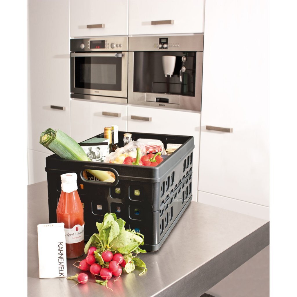 Lekker boodschappen doen met de Square vouwkrat met 32L opslag- en vervoersruimte. Een boodschappentas biedt vaak niet genoeg ruimte of ondersteuning voor je levensmiddelen. Sunware's Square-kratten zijn daarom speciaal ontworpen voor het vervoeren en opbergen van levensmiddelen. Toch zijn er nog heel wat meer toepassingen te bedenken voor deze kratten. Denk bijvoorbeeld aan gebruik op het sportveld voor bidons en ballen etc., of op de camping voor de afwas en je kampeerspullen!De Square vouwkratten van Sunware zijn robuust en stevig en laten zich compact opbergen wanneer ze niet in gebruik zijn doordat ze eenvoudig inklapbaar zijn. Ideaal dus voor onderweg! De 32L Square vouwkrat is een handige mid-size krat. Door de twee handgrepen aan de zijkant is de krat makkelijk te tillen. Kleur: zwart.
