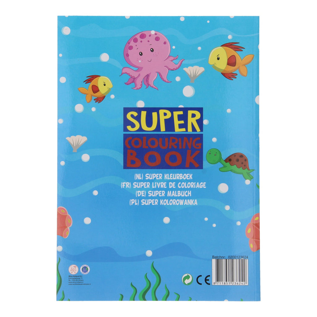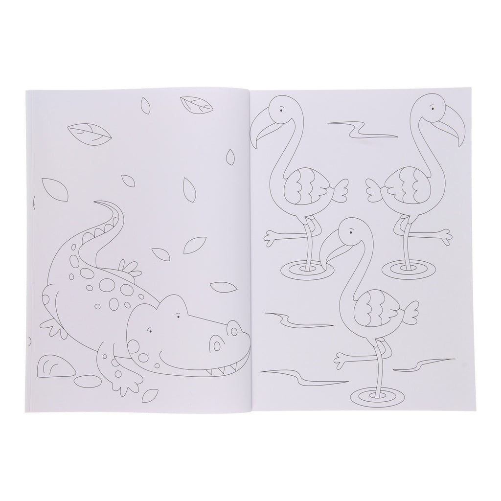 Maar liefst 96 pagina's om allerlei tekeningen in te kleuren van verschillende (onder)water dieren, zoals een krokodil, een krab, kikker en zeemeerminnen.