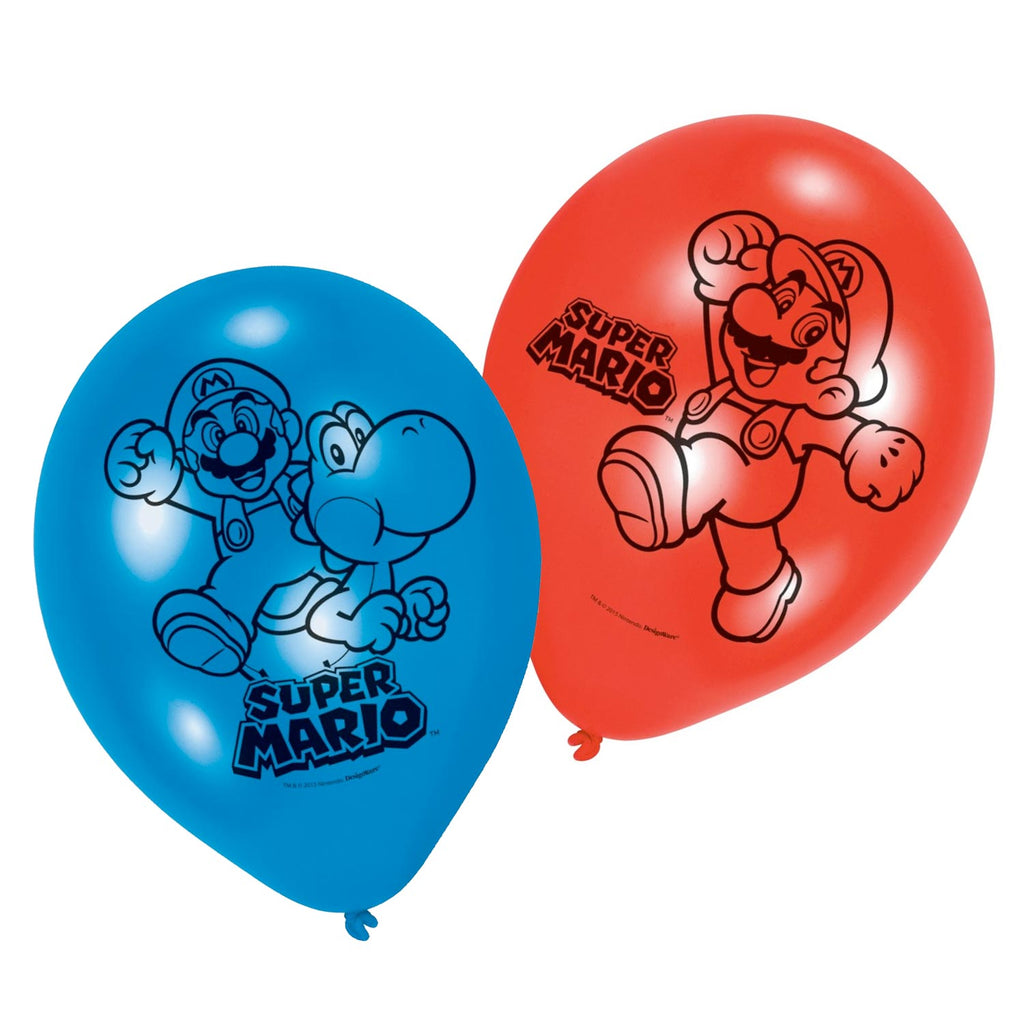 Set van 6 Super Mario ballonnen in de kleuren rood en blauw.
