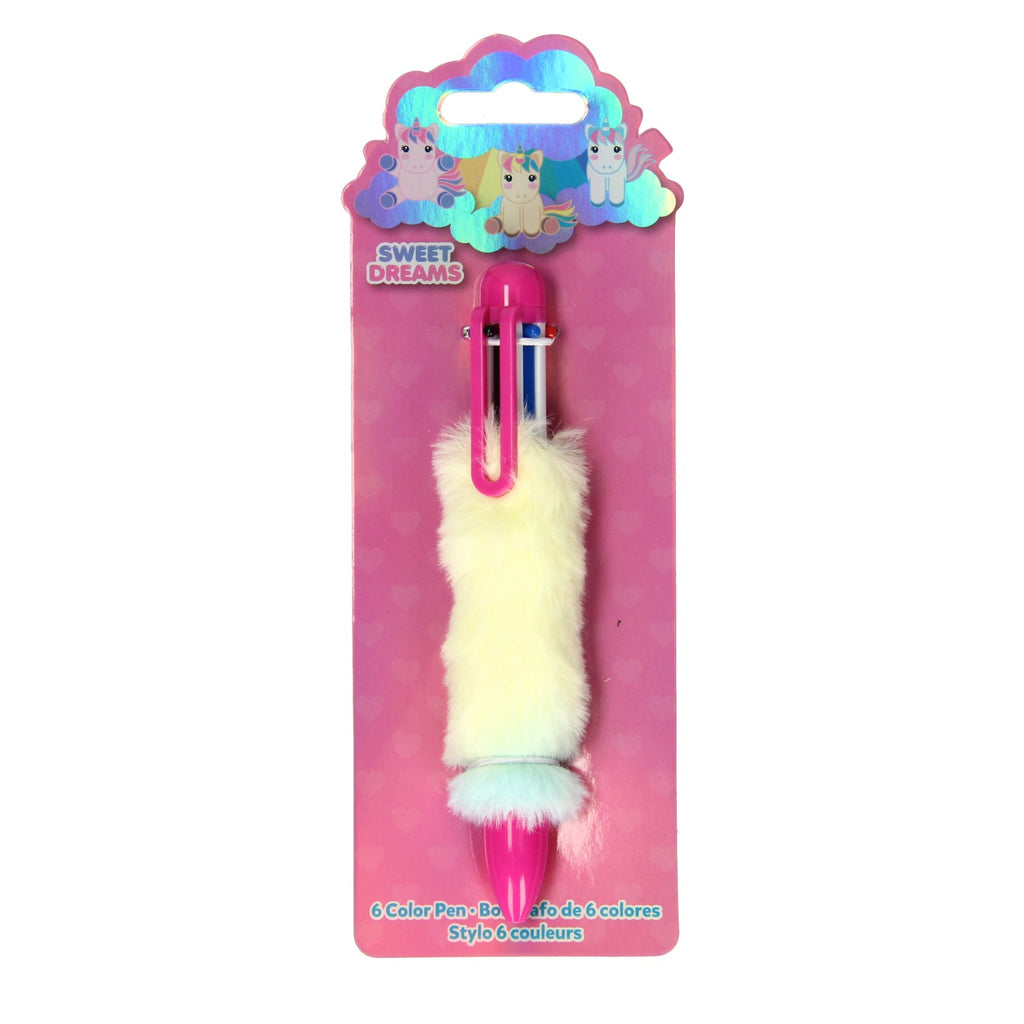 Sweet dreams meerkleurenpen in een eenhoorn thema. De pen bevat 6 kleuren om mee te schrijven of tekenen.