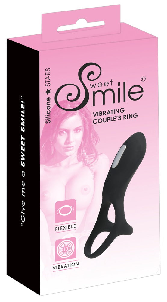 Cock/ball ring Vibrating Couples Ring from Sweet Smile with a vibro-clitoral stimulator. The cock ring supports the erection because of the blood congestion effect – this helps him have a longer-lasting erection. The ball ring means that it fits securely and the clitoral stimulator pleasures her hotspot with tingling vibrations during sex. The 10 very powerful vibration modes can easily be controlled with the button on the toy. The high-quality material with a soft touch texture feels great against the skin during stimulation and when it's being worn. It can be recharged with the included USB cable.