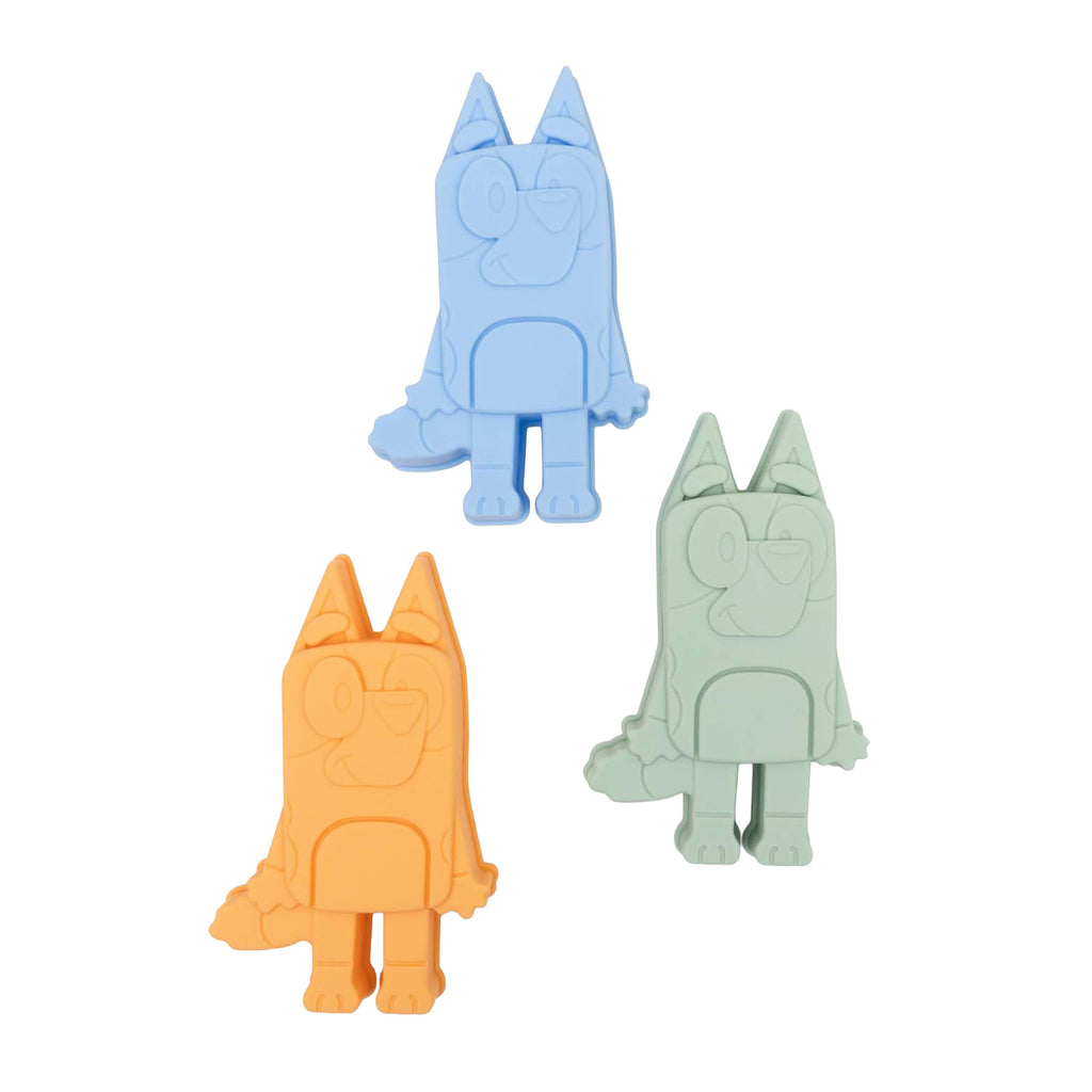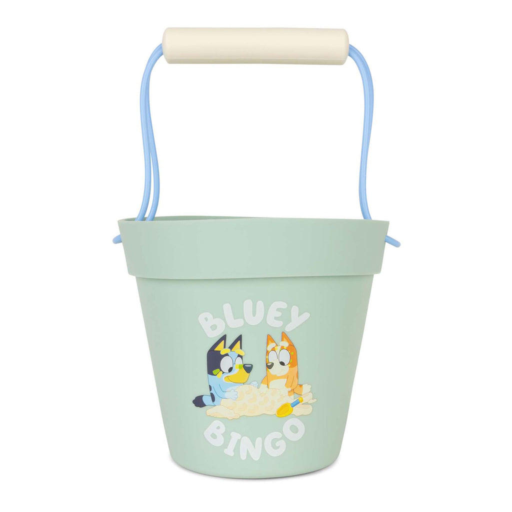 Siliconen Bluey strandsetje met 1 emmertje, 4 zandvormpjes en 1 schepje.