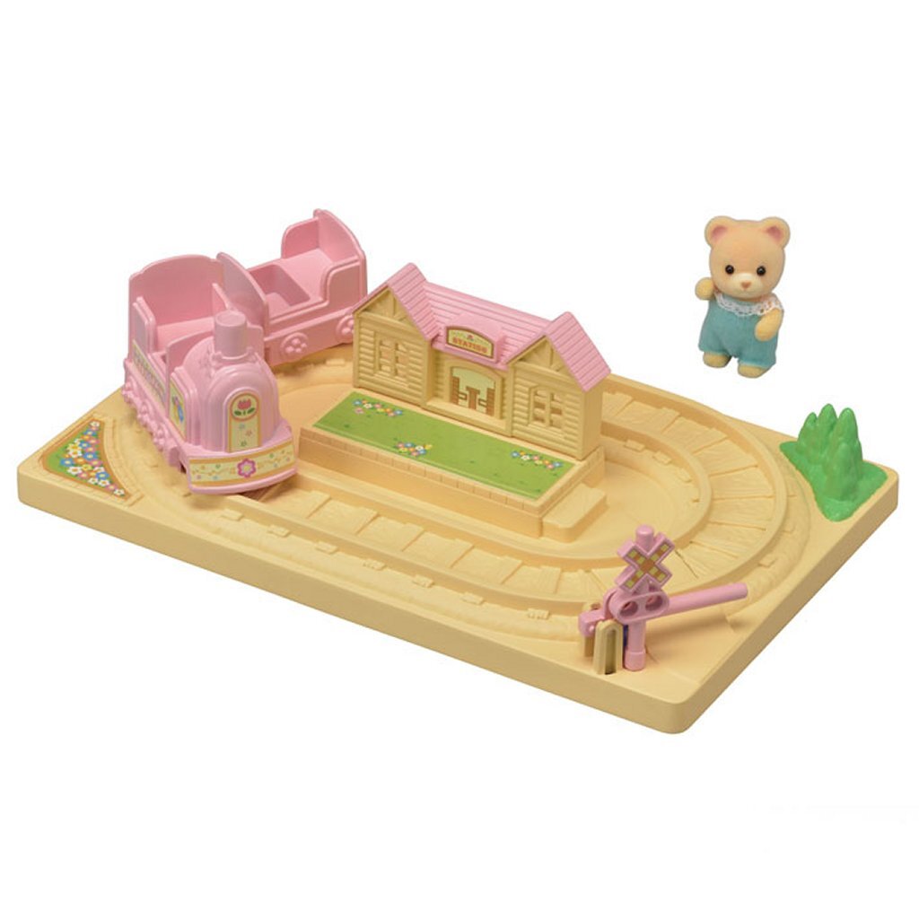 DeSylvanian Families 5320 baby choo-choo trein komt als een set met één baby beerfiguur. Deze speelset is meteen klaar voor kinderen om mee te spelen als een product op zichzelf. De twee treinstellen kunnen met de hand over het spoor worden geduwd. Er past één babyfiguur in elk treinstel. Er is ook een spoorwegovergang met een beweegbaar hek. Geschikt voor kinderen vanaf 3 jaar.