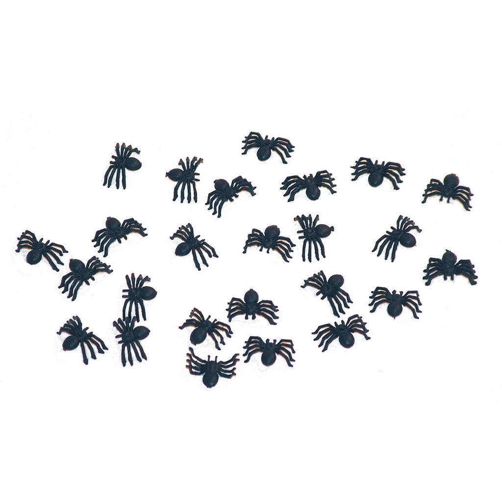 Set van 25 zwarte kleine spinnetjes, zeer geschikt als tafeldecoratie.