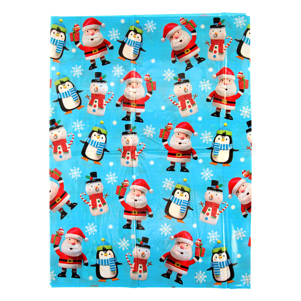 Plastic tafelkleed met kerstthema. Tafelkleed is 120 bij 180 centimeter.