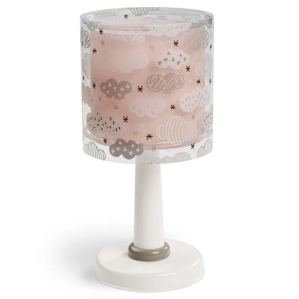 Staat prachtig op het bureau of nachtkastje van een prinsessenkamer: de roze Dalber Tafellamp Wolken! De schattige grijswitte wolkjes op de lamp zijn om bij weg te dromen. Zeker als je de kinderlamp aandoet, want dan fonkelt er een zachtroze licht uit de Dalber Tafellamp Wolken! De lamp is geschikt voor een lichtbron met een E14 fitting, 40W max (Lichtbron niet inbegrepen).