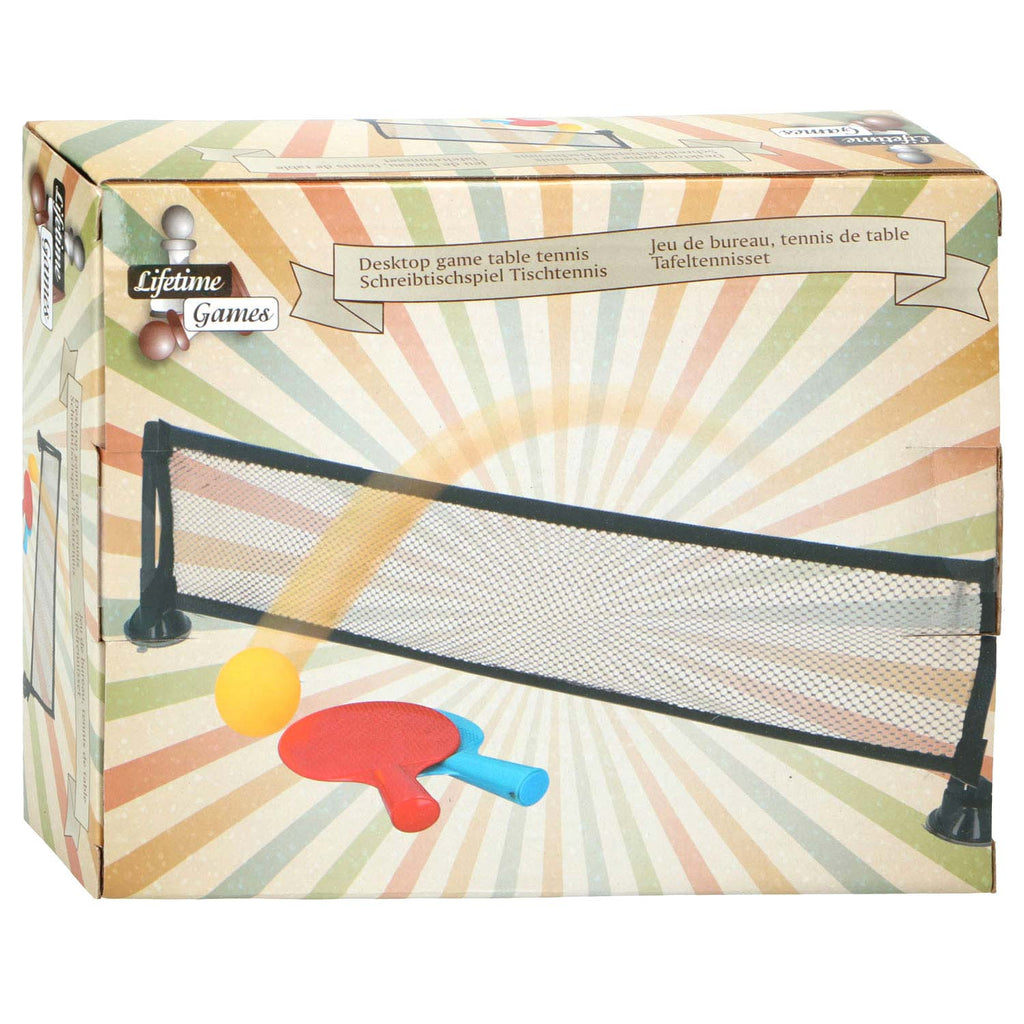 Speel een potje tafeltennis op je bureau of de eettafel met deze tafeltennisset. Inhoud: net, 2 zuignappen, bal en 2 tafeltennisbatjes. Geschikt vanaf 5 jaar .