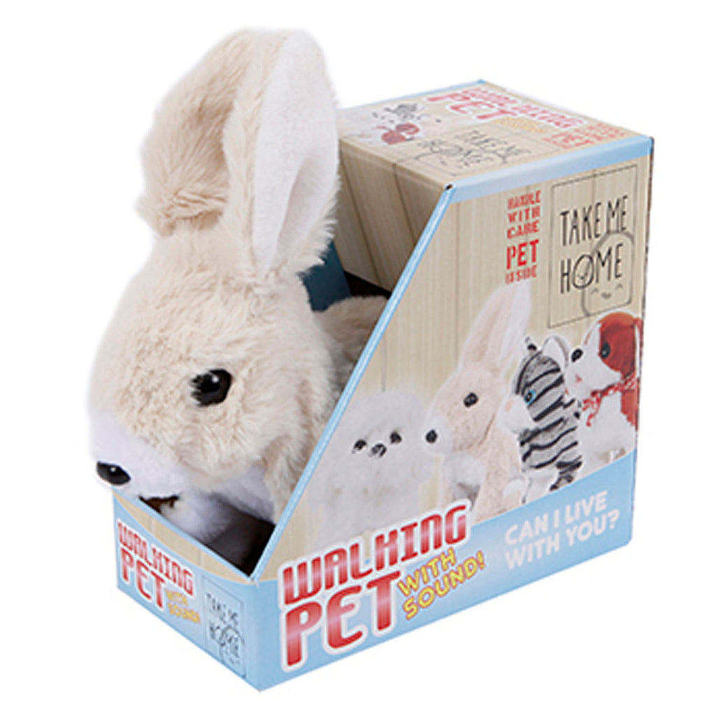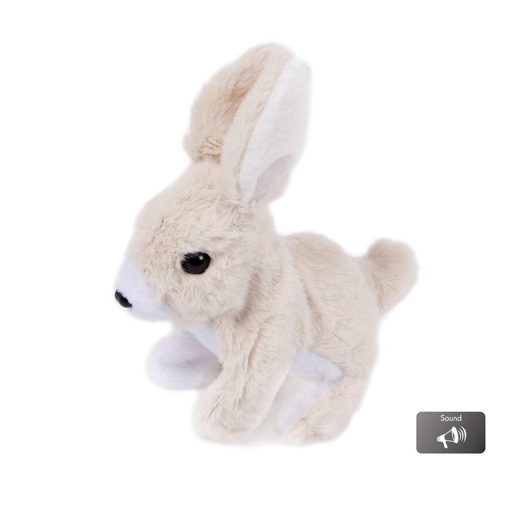 Take Me Home Loophaas met een beige kleur. De haas kan lopen en maakt geluid. Werkt op 2 AA-batterijen (niet inbegrepen).
