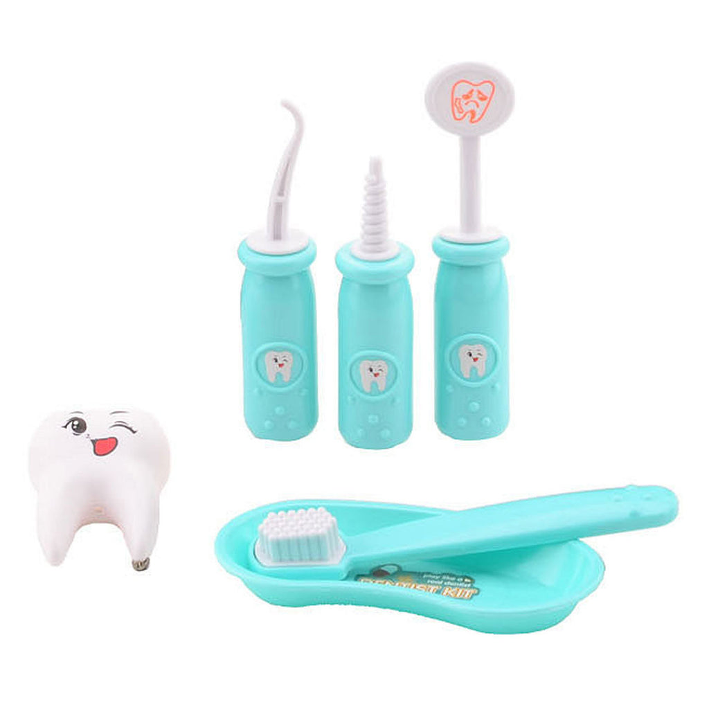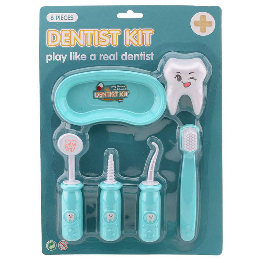 Doe je mond wijd open en laat de tandarts zijn werk doen! Dat doet hij met de 6delige Tandarts Speelset die bestaat uit een tandenborstel, kies, haakje, boor, spiegeltje en spuugbakje. Leuk, tandartsje spelen met deze blauwwitte kunststoffen Tandarts Speelset!