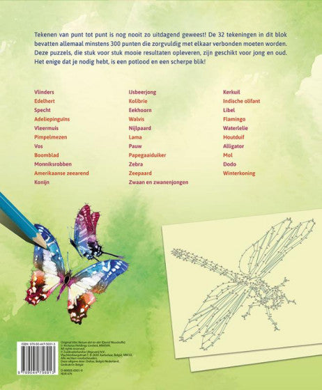 Tekenen van punt tot punt is nog nooit zo uitdagend geweest! De 32 tekeningen in dit blok bevatten allemaal minstens 300 punten die zorgvuldig met elkaar verbonden moeten worden. Deze puzzels, die stuk voor stuk mooie resultaten opleveren, zijn geschikt voor jong en oud. Het enige dat je nodig hebt, is een potlood en een scherpe blik!