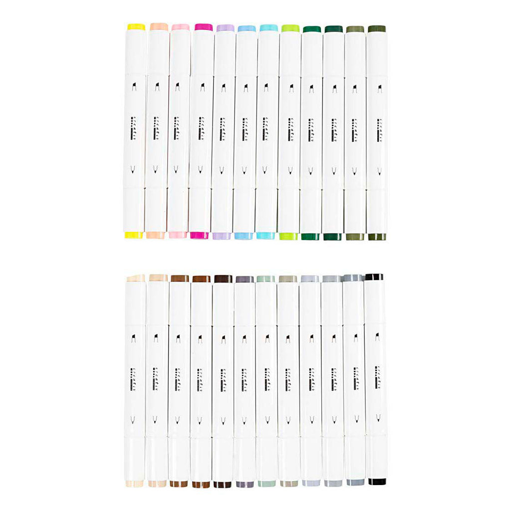 Set van 24 pastelkleurige stiften. Hoogwaardige 2-in-1-stift op alcoholbasis die permanent en semitransparant droogt. De stiften zijn de perfecte tekenhulp als je serieus met illustraties bezig bent of gewoon wilt dat je schetsen en kleuren op wit papier haarscherp zijn.