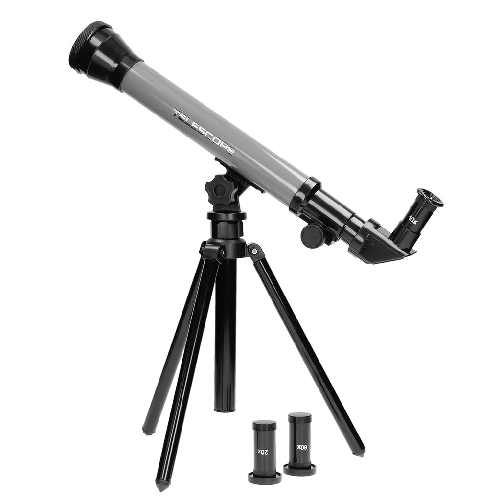Bekijk de sterren van dichtbij met deze gele telescoop op standaard. Plaats een van de 3 verschillende opzetstukken op de telescoop en ontdek het sterrenstelsel. De telescoop heeft een 30 mm objectief en is verstelbaar in stand. Zo kun je alle hoeken van het heelal bekijken. De telescoop is gemaakt van stevig kunststof en staat op een standaard van ca. 30 cm.