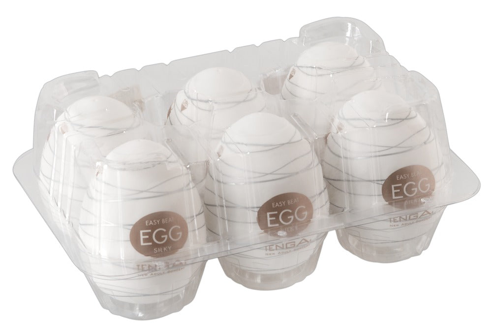 Enjoy the phenomenal feelings of the disposable TENGA EGG Silky egg-shaped masturbators. These small beauties have stimulating grooves inside for ecstatic feelings of lust during penetration. 6 eggs in a box. Lubricant included.