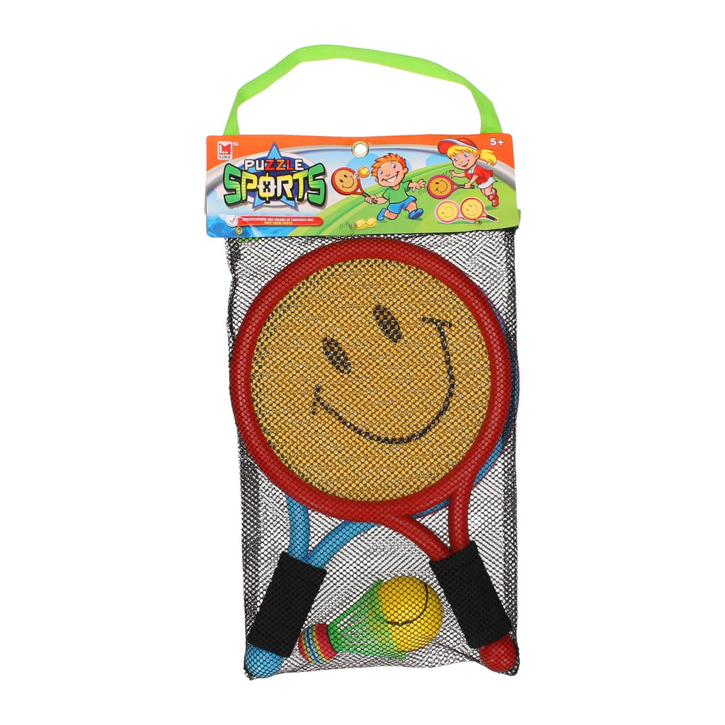 Kunststof tennis set bestaande uit 2 spinnenweb rackets, 1 shuttle en een zachte tennisbal. Leuk voor op de camping of op het strand!