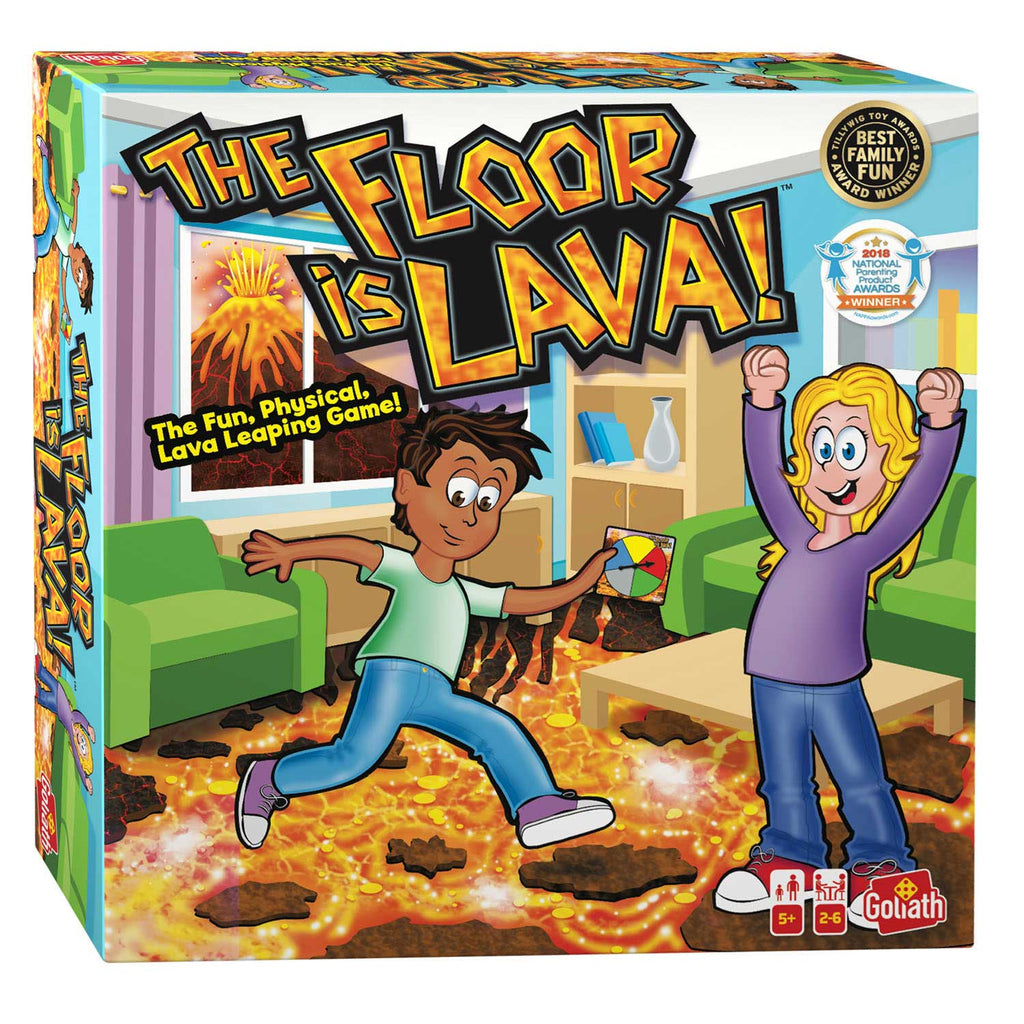 Een spel waarbij spelers zich moeten voorstellen dat de vloer gesmolten hete lava is terwijl ze aan het kleurenwiel draaien om naar de juiste stukken schuim te springen om de veiligheid te bereiken.De vloer is lava!is een familiespel dat fysieke activiteit, een actieve verbeeldingskracht en boeiende opwinding voor kinderen en volwassenen bevordert. Geschikt voor 2 tot 6 spelers vanaf 5 jaar.