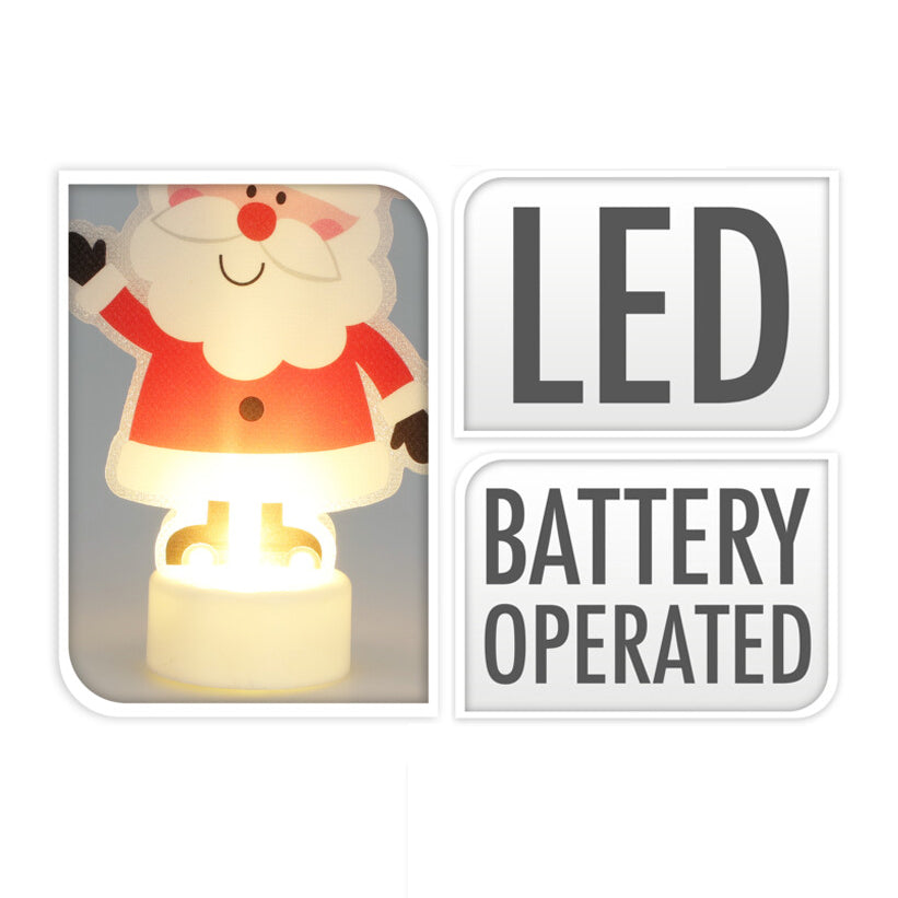 12 gezellige theelichtjes met leuke kerstfiguren: een kerstman, rendier, sneeuwpop en kerstboom. Batterijen (LR44 knoopcel) zijn inbegrepen.