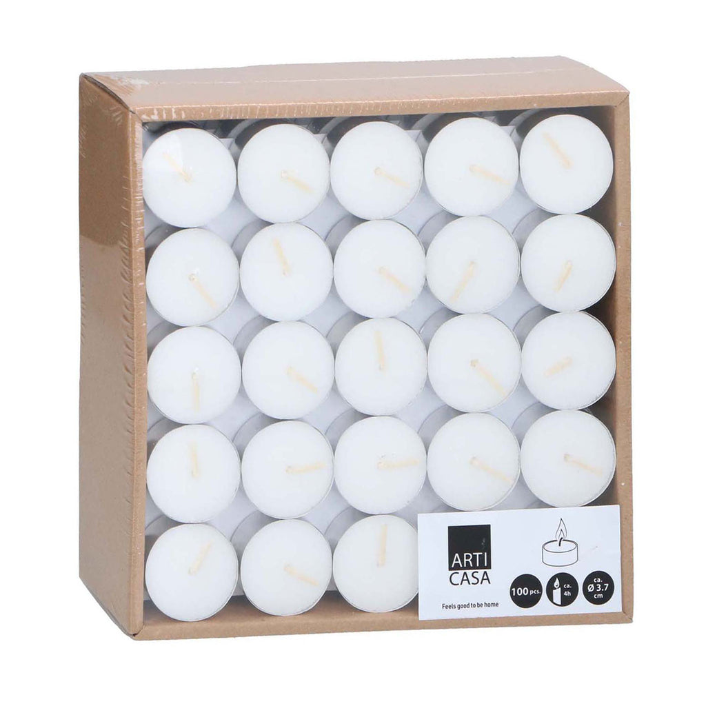 De ARTICASA Theelichten 100 stuks zijn perfect voor elke gelegenheid. Deze hoogwaardige theelichten zijn van uitstekende kwaliteit en zorgen voor een warme, gezellige sfeer in huis. Brandtijd: ca. 4 uur.