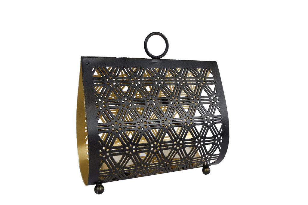 Theelichth Helga S goud/zwart metaal 15x14x8cm