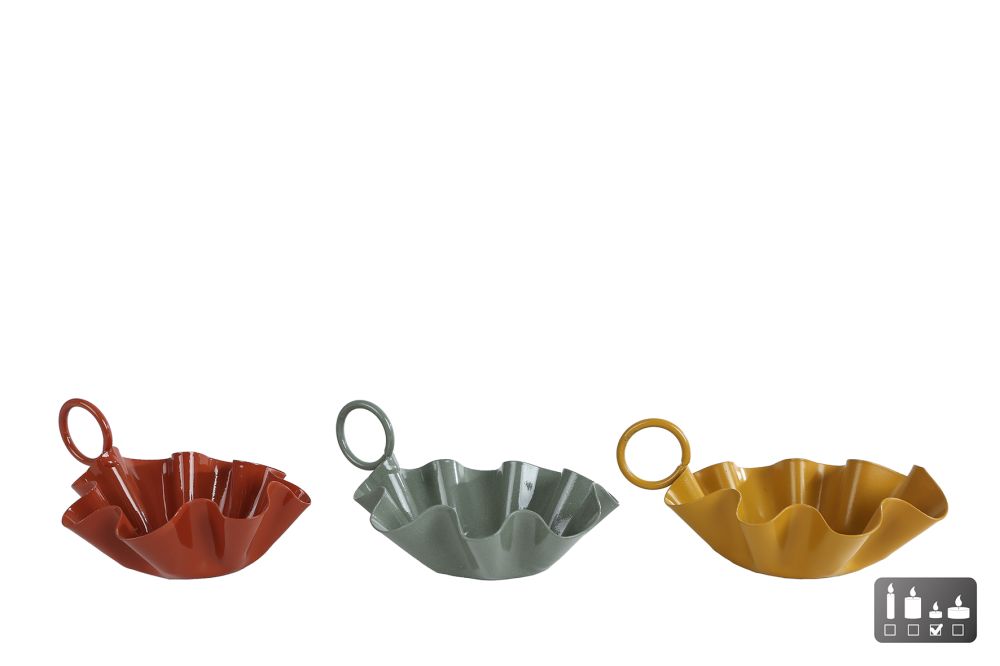 Theelichthouder Naomi rood/groen/mosterd metaal 11x8,5x5cm