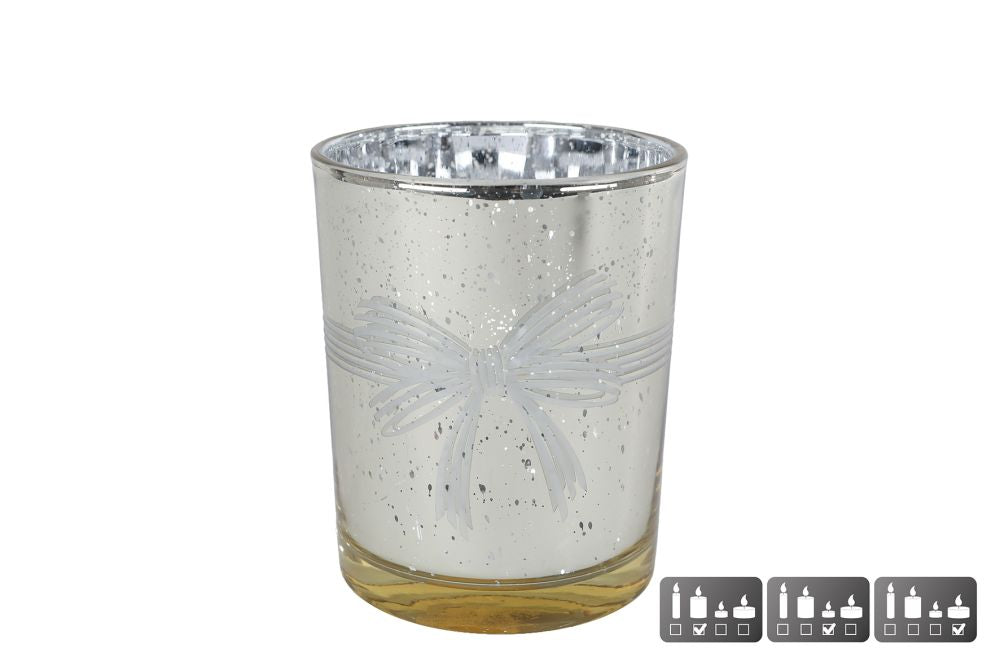 Theelichthouder Strik M goud glas 10x10x12,5cm
