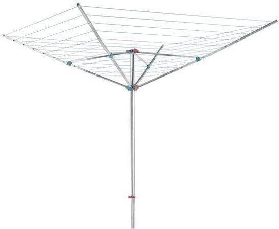 De Metaltex Meteor droogmolen is van uitzonderlijke kwaliteit. De totale drooglengte van de waslijnen bedraagt 60 meter en deze zijn gemaakt van versterkt plastic. Deze droogmolen heeft een handblokkage met schroeven. De Meteor droogmolen heeft een standbuis van 40mm en is geleverd met een voet om te verankeren. De afmetingen van de Meteor droogmolen zijn 200x200x180cm als deze open staat met een diagonaal van 290cm. De droogmolen is gemaakt van aluminium.