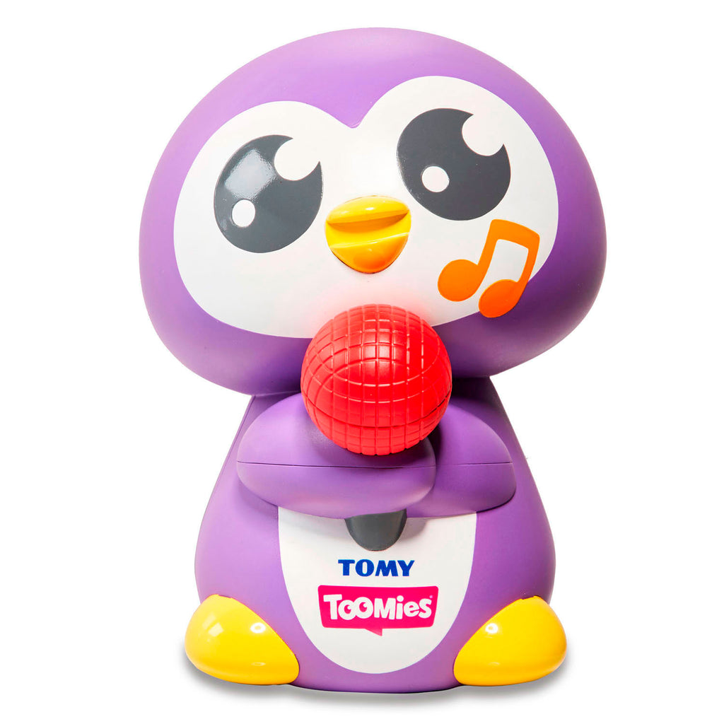 In bad gaan wordt nu nog leuker met Toomies Tuneless Penguin! Deze Pinguin drijft op het water maar als je hem onder water duwt, zal hij geluidjes laten horen en vrolijke voor je gaan zingen. Duw hem onder water en zie hoe hij bubbels blaast uit zijn kop! Hij kan zelfs tegelijkertijd zingen, ook onder water! Hij is gemaakt van materiaal dat eenvoudig vast te pakken is en kleintjes zullen zijn vrolijke kleuren en lieve oogjes superschattig vinden. Hij heeft een rode microfoon tussen zijn flippers en ziet eruit als een echte superster! Als je hem onder water duwt, komt hij altijd weer vanzelf naar boven. Als Penguin even stil valt, draai hem dan op zijn kop, leeg hem met een goede shake en hij zal weer klaar zijn om te zingen! Geen batterijen nodig. Leeftijdsindicatie: 12 maanden+